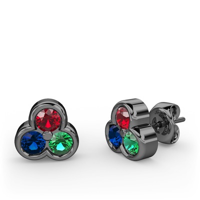 Garnet, lab safir ve yeşil kuvars 925 ayar siyah rodyum kaplama gümüş küpe
