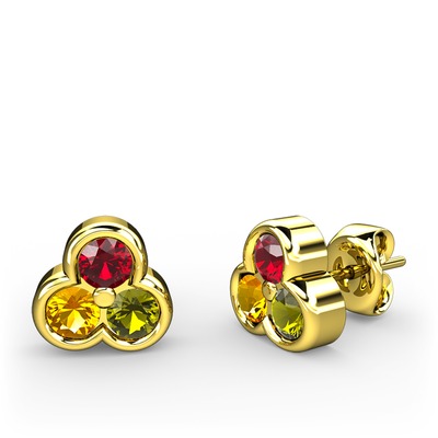 Garnet, sitrin ve peridot 8 ayar altın küpe