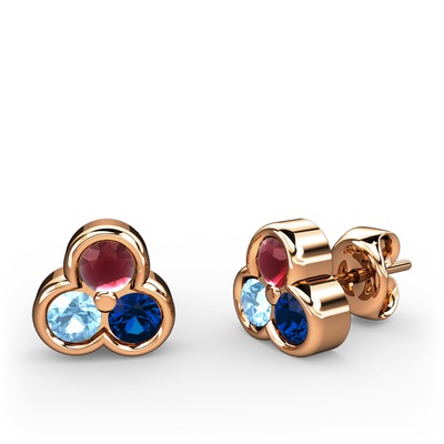 Kök yakut, akuamarin ve lab safir 18 ayar rose altın küpe