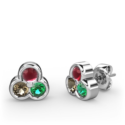 Kök yakut, dumanlı kuvars ve yeşil kuvars 925 ayar gümüş küpe