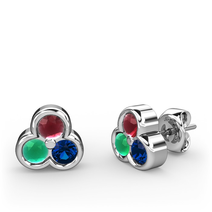 Kök yakut, kök zümrüt ve lab safir 14 ayar beyaz altın küpe