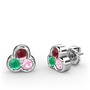 Kök yakut, kök zümrüt ve pembe kuvars 14 ayar beyaz altın küpe