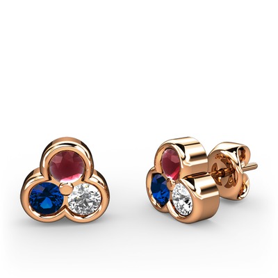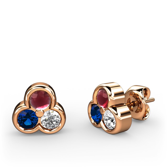 Kök yakut, lab safir ve swarovski 8 ayar rose altın küpe