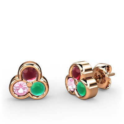 Kök yakut, pembe kuvars ve kök zümrüt 925 ayar rose altın kaplama gümüş küpe