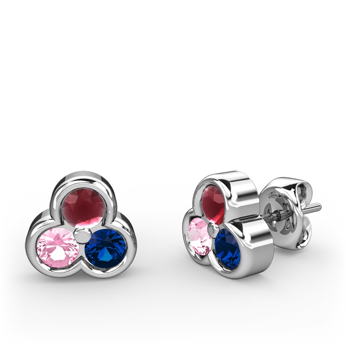 Kök yakut, pembe kuvars ve lab safir 18 ayar beyaz altın küpe