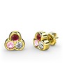 Kök yakut, pembe kuvars ve pırlanta 925 ayar altın kaplama gümüş küpe (0.22 karat)