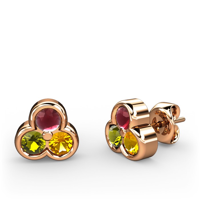 Kök yakut, peridot ve sitrin 14 ayar rose altın küpe