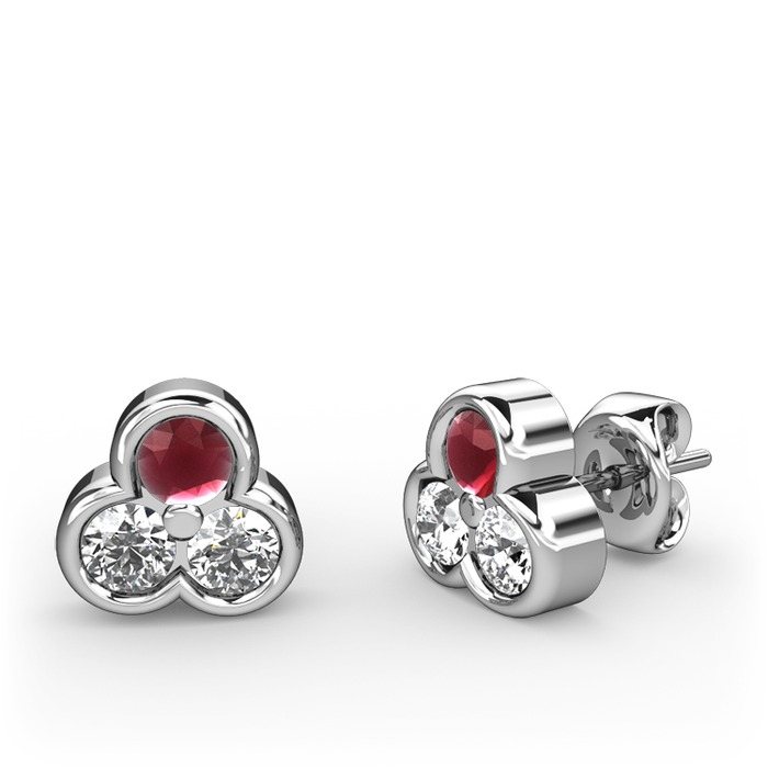Kök yakut, pırlanta ve swarovski 14 ayar beyaz altın küpe (0.22 karat)