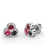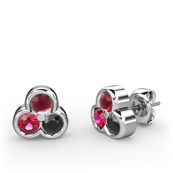 Kök yakut, rodolit garnet ve siyah zirkon 14 ayar beyaz altın küpe