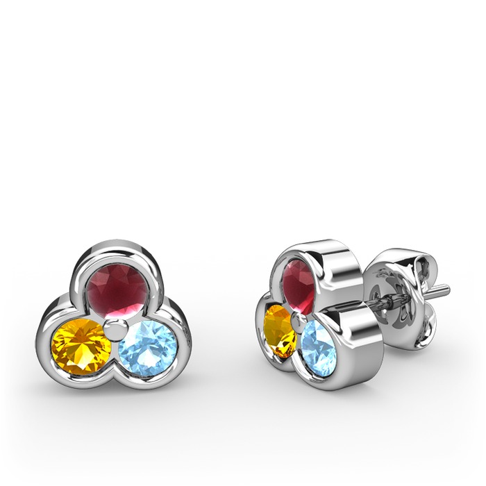 Kök yakut, sitrin ve akuamarin 925 ayar gümüş küpe