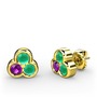 Kök zümrüt ve ametist 18 ayar altın küpe