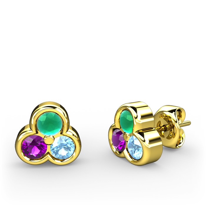 Kök zümrüt, ametist ve akuamarin 925 ayar altın kaplama gümüş küpe