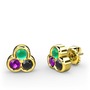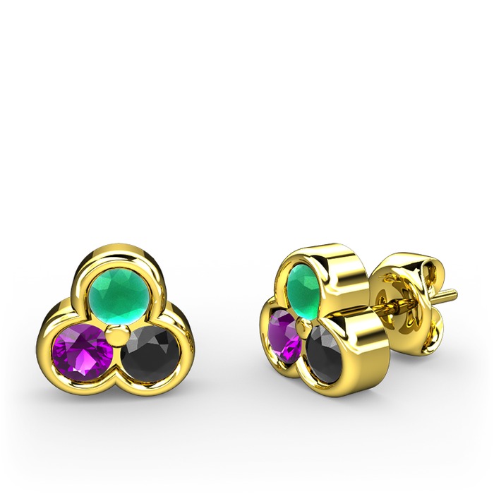 Kök zümrüt, ametist ve siyah zirkon 8 ayar altın küpe