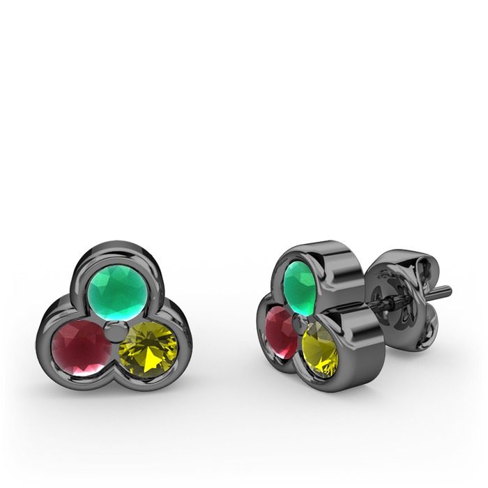 Kök zümrüt, kök yakut ve peridot 925 ayar siyah rodyum kaplama gümüş küpe