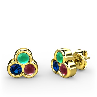 Kök zümrüt, lab safir ve kök yakut 8 ayar altın küpe