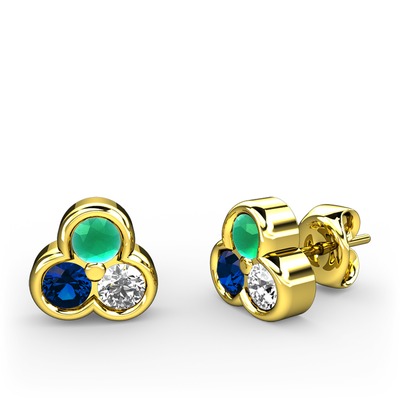 Kök zümrüt, lab safir ve pırlanta 14 ayar altın küpe (0.22 karat)