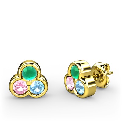 Kök zümrüt, pembe kuvars ve akuamarin 14 ayar altın küpe