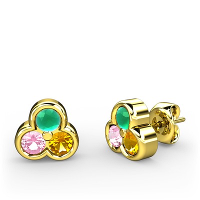 Kök zümrüt, pembe kuvars ve sitrin 925 ayar altın kaplama gümüş küpe
