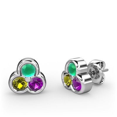 Kök zümrüt, peridot ve ametist 14 ayar beyaz altın küpe