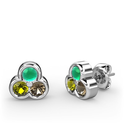 Kök zümrüt, peridot ve dumanlı kuvars 14 ayar beyaz altın küpe