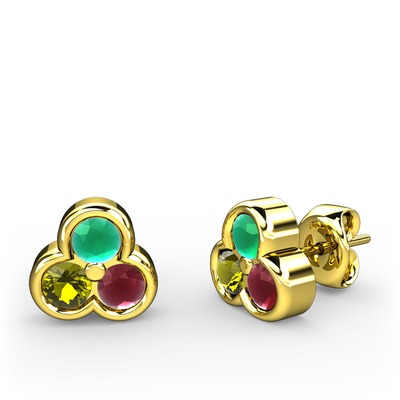 Kök zümrüt, peridot ve kök yakut 8 ayar altın küpe