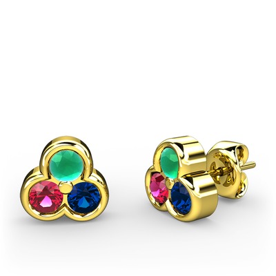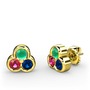 Kök zümrüt, rodolit garnet ve lab safir 14 ayar altın küpe