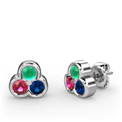 Kök zümrüt, rodolit garnet ve lab safir 14 ayar beyaz altın küpe