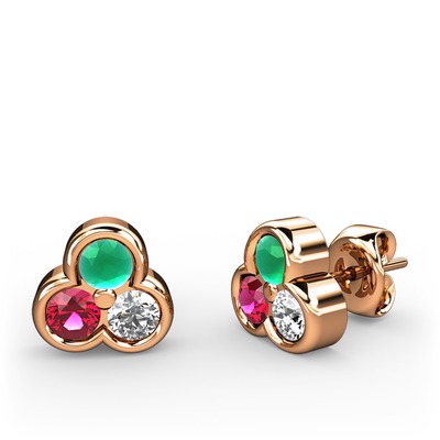 Kök zümrüt, rodolit garnet ve pırlanta 8 ayar rose altın küpe (0.22 karat)