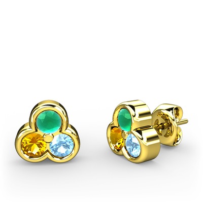 Kök zümrüt, sitrin ve akuamarin 14 ayar altın küpe