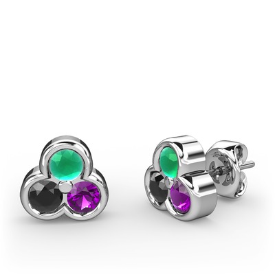 Kök zümrüt, siyah zirkon ve ametist 14 ayar beyaz altın küpe