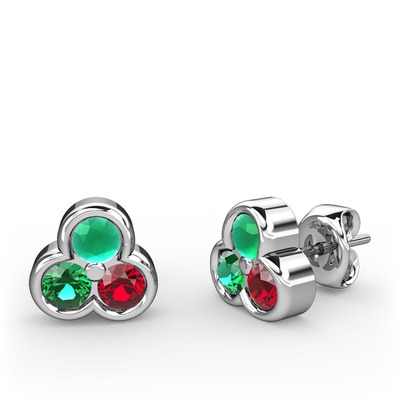 Kök zümrüt, yeşil kuvars ve garnet 14 ayar beyaz altın küpe