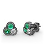 Kök zümrüt, yeşil kuvars ve pırlanta 925 ayar siyah rodyum kaplama gümüş küpe (0.22 karat)