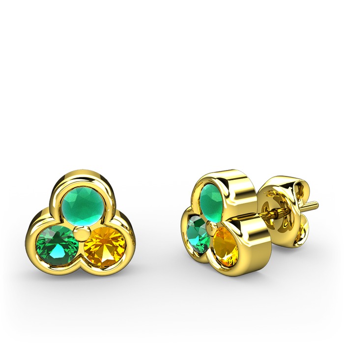 Kök zümrüt, yeşil kuvars ve sitrin 8 ayar altın küpe