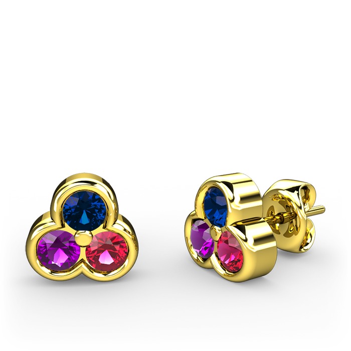Lab safir, ametist ve rodolit garnet 8 ayar altın küpe