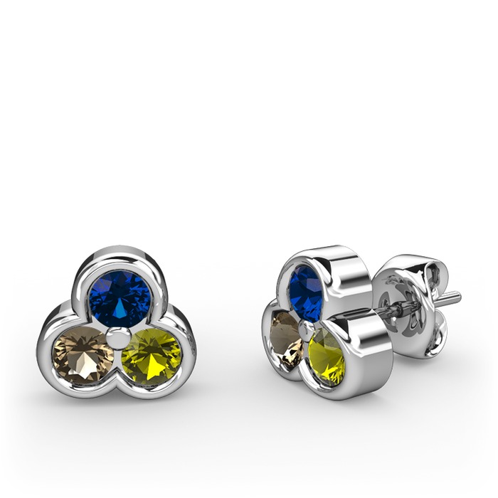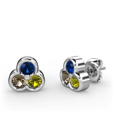 Lab safir, dumanlı kuvars ve peridot 14 ayar beyaz altın küpe