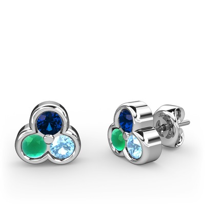 Lab safir, kök zümrüt ve akuamarin 18 ayar beyaz altın küpe