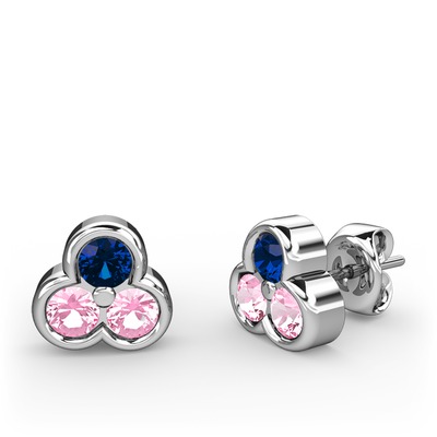 Lab safir ve pembe kuvars 18 ayar beyaz altın küpe