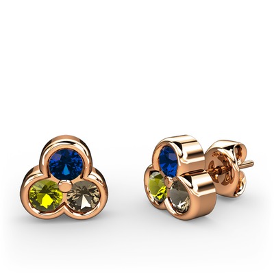Lab safir, peridot ve dumanlı kuvars 8 ayar rose altın küpe