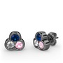 Lab safir, pırlanta ve pembe kuvars 925 ayar siyah rodyum kaplama gümüş küpe (0.22 karat)