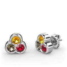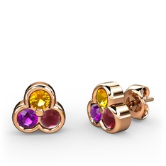 Lab safir, sitrin ve akuamarin 14 ayar rose altın küpe