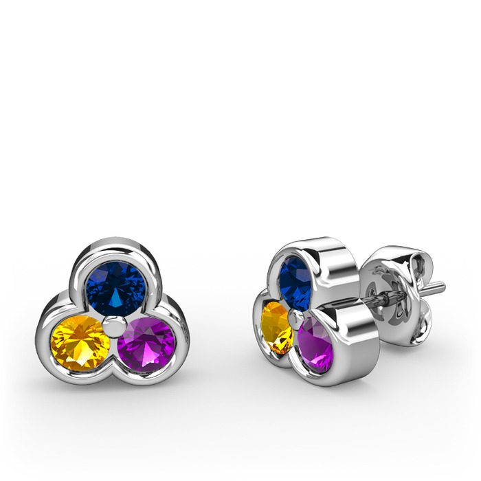 Lab safir, sitrin ve ametist 8 ayar beyaz altın küpe