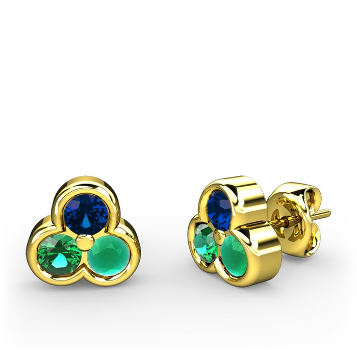 Lab safir, yeşil kuvars ve kök zümrüt 14 ayar altın küpe