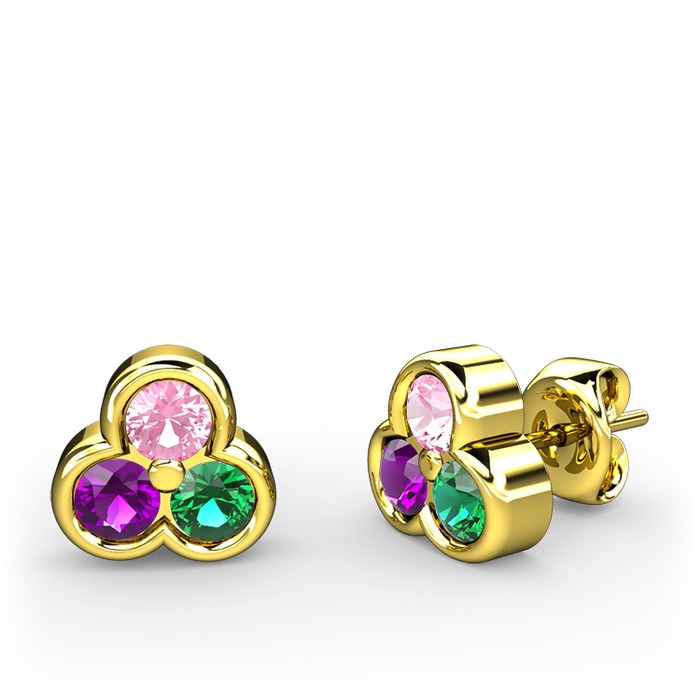 Pembe kuvars, ametist ve yeşil kuvars 18 ayar altın küpe