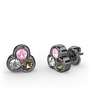 Pembe kuvars, beyaz zirkon ve dumanlı kuvars 925 ayar siyah rodyum kaplama gümüş küpe
