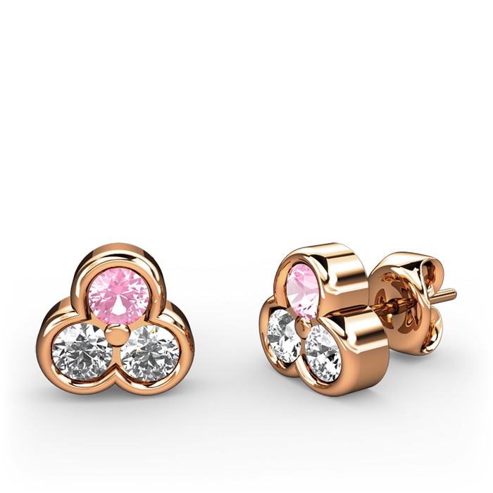 Pembe kuvars, beyaz zirkon ve pırlanta 925 ayar rose altın kaplama gümüş küpe (0.22 karat)