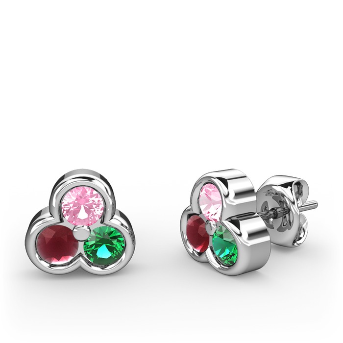 Pembe kuvars, kök yakut ve yeşil kuvars 18 ayar beyaz altın küpe