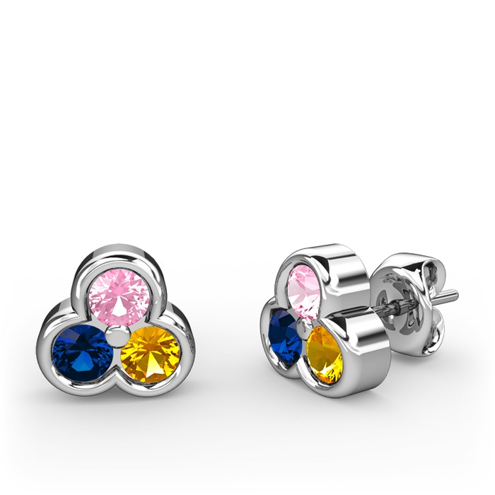 Pembe kuvars, lab safir ve sitrin 8 ayar beyaz altın küpe