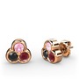 Pembe kuvars, siyah zirkon ve kök yakut 8 ayar rose altın küpe