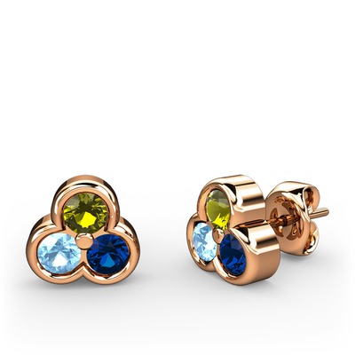 Peridot, akuamarin ve lab safir 18 ayar rose altın küpe