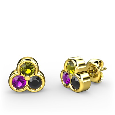 Peridot, ametist ve siyah zirkon 14 ayar altın küpe